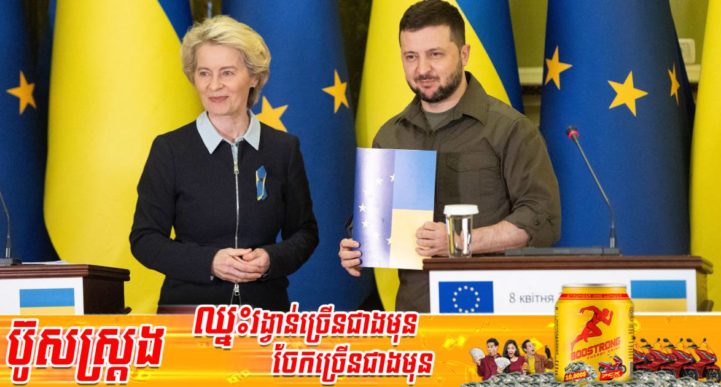 អ៊ុយក្រែន៖ យោងតាមការចុះផ្សាយរបស់បណ្តាញសារព័ត៌មាន Channel News Asia នៅព្រឹកថ្ងៃចន្ទ ទី១៨ ខែមេសានេះបានឲ្យដឹងថា ប្រទេសអ៊ុយក្រែនបានបំពេញឯកសាររួចរាល់ដើម្បីដាក់ស្នើសុំចូលជាសមាជិកផ្លូវការនៃសហភាពអឺរ៉ុប។ បើតាមលោក Ihor Zhovkva ដែលជាអនុប្រធានការិយាល័យប្រធានាធិបតីអ៊ុយក្រែនបានបញ្ជាក់ថា គឺនៅត្រឹមព្រឹកថ្ងៃចន្ទនេះរដ្ឋាភិបាលនៃប្រទេសអ៊ុយក្រែនបានបំពេញឯកសាររួចរាល់អស់ហើយសម្រាប់ការក្លាយខ្លួនជាសមាជិកនៃសហភាពអឺរ៉ុប ខណៈសំណើសមាជិកភាពនេះនឹងត្រូវត្រួតពិនិត្យ ផ្តល់មតិ និងអនុម័តដោយគណៈកម្មការអឺរ៉ុបនៅពេលបន្ទាប់ទៀត។ គួររម្លឹកជូនថា សំណុំឯកសារសម្រាប់ស្នើសុំចូលជាសមាជិកនៃសហភាពអឺរ៉ុបនេះត្រូវបានលោកស្ត្រី Ursula von der Leyen ដែលជាប្រធានគណៈកម្មការអឺរ៉ុបប្រគល់ជូនលោកប្រធានាធិបតីអ៊ុយក្រែន Volodymyr Zelenskyy ដោយផ្ទាល់ក្នុងអំឡុងពេលដែលលោកស្រីបានអញ្ជើញទៅធ្វើទស្សនកិច្ចក្នុងប្រទេសអ៊ុយក្រែនកាលពីថ្ងៃទី ៨ ខែមេសាកន្លងទៅនេះ។ ប្រភពខាងលើបានបញ្ជាក់ផងដែថា ក្រុមប្រឹក្សានៃសហភាពអឺរ៉ុបនឹងបើកកិច្ចប្រជុំវិញសំណើរបស់ប្រទេសអ៊ុយក្រែននេះនៅថ្ងៃទី ២៣ និង ២៤ ខែមេសាខាងមុខនេះហើយ