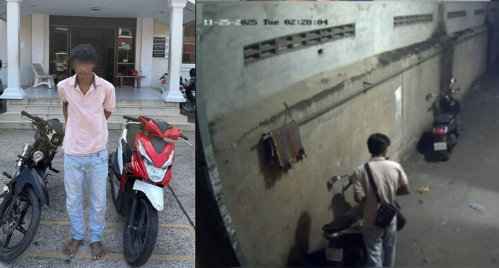 (រាជធានីភ្នំពេញ)៖ នៅរសៀលថ្ងៃទី ២៥ ខែវិច្ឆិកា ឆ្នាំ ២០២៥ ក្រុមការងារព័ត៌មាន និងប្រតិកម្មរហ័ស នៃស្នងការដ្ឋាននគរបាលរាជធានីភ្នំពេញ បានឱ្យដឆងថា ជនសង្ស័យ ១នាក់ ដែលធ្វើសកម្មភាពលួចយកម៉ូតូពីនារីម្នាក់ ដែលមកខ្ចីលុយមិត្តភក្ដិបង់ថ្លៃបន្ទប់ជួល នៅសង្កាត់ទឹកល្អក់ទី៣ ត្រូវសមត្ថកិច្ចនគរបាលខណ្ឌទួលគោក ឃាត់ខ្លួន។ នៅថ្ងៃទី ២៥ ខែវិច្ឆិកា ឆ្នាំ ២០២៥ វេលាម៉ោងប្រហែល១០:៣០នាទីព្រឹក កម្លាំងផ្នែកជំនាញ នៃអធិការដ្ឋាននគរបាលខណ្ឌទួលគោក បានធ្វើការស្រាវជ្រាវឃាត់ខ្លួនជនសង្ស័យ០១នាក់ ពាក់ព័ន្ធករណីលួចយកម៉ូតូ នៅចំណុចផ្លូវរថភ្លើង ភូមិ១៧ ក្រុម៧៨ សង្កាត់បឹងកក់ទី២ ខណ្ឌទួលគោក ដែលបានប្រព្រឹត្តបទល្មើសនៅចំណុចមុខផ្ទះ៦១B ផ្លូវលេខ២៥៣