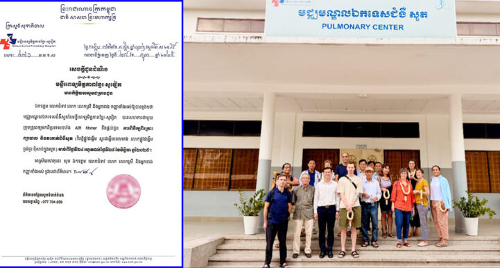 (រាជធានីភ្នំពេញ)៖ តាមការផេកផ្លុវការរបស់ មជ្ឈមណ្ឌលឯកទេសជំងឺ សួត នៃមន្ទីរពេទ្យមិត្តភាពខ្មែរ-សូវៀត បានឱ្យដឹងថា ក្រុមគ្រូពេទ្យបារាំង AIR-KHMER បានមកដល់ប្រទេសកម្ពុជា និងចូលរួមសហការជាមួយក្រុមគ្រូពេទ្យមជ្ឈមណ្ឌលឯកទេសជំងឺសួត នៃមន្ទីរពេទ្យមិត្តភាពខ្មែរ-សូវៀត។ សម្រាប់ការចូលរួមមួយនេះ ជាគោលបំណងរៀបចំដើម្បីធ្វើវះកាត់ជួយបងប្អូនដែលកំពុងប្រឈមមុខនឹងជំងឺសួត។ ក្នុងសេចក្ដីជូនដំណឹងពី មជ្ឈមណ្ឌលឯកទេសជំងឺសួតនៃមន្ទីរពេទ្យមិត្តភាពខ្មែរ-សូវៀត បានបញ្ជាក់បន្ថែមថា មន្ទីរពេទ្យមិត្តភាពខ្មែរ-សូវៀត បានសហការជាមួយ ក្រុមគ្រូពេទ្យមកពីប្រទេសបារាំង AIR Khmer នឹងផ្តល់ជូន ការពិនិត្យពិគ្រោះ ព្យាបាល និងវះកាត់ជំងឺសួត (វិបត្តិផ្លូវដង្ហើម ស្ទះដង្ហើមពេលគេង រលាកផ្លូវដង្ហើម ធ្ងន់ធ្ងរ ដុំសាច់ក្នុងសួត) ចាប់ពីថ្ងៃទី ២៤ រហូតដល់ថ្ងៃទី ២៨