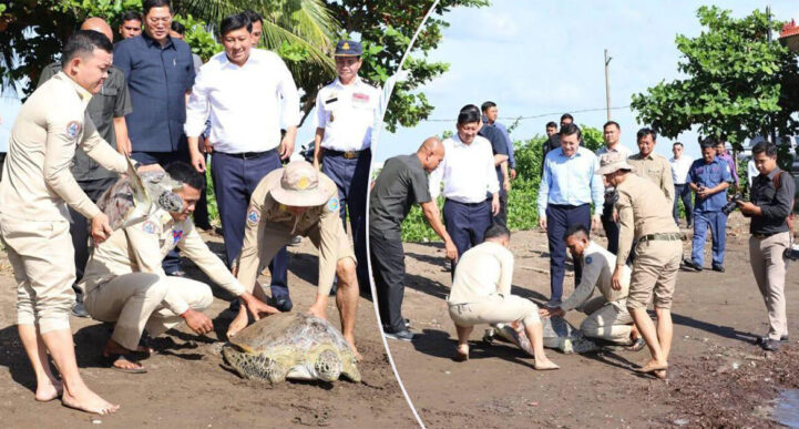 (ខេត្តកែប)៖ យោងតាមការចុះផ្សាយពី ក្រសួងព័ត៌មាន នៅថ្ងៃទី ១៩ ខែវិច្ឆិកា ឆ្នាំ ២០២៥ នេះ បានឱ្យដឹងថា អណ្តើកសមុទ្រចំនួន ២ក្បាល ត្រូវបានព្រលែងចូលសមុទ្រវិញ ក្រោយទទួលបានពីអ្នកនេសាទ នៅខេត្តកែប។ កាលពីថ្ងៃទី ១៨ ខែវិច្ឆិកា ឆ្នាំ ២០២៥ ប្រជានេសាទរស់នៅកោះពោធិ៍ ក្នុងទឹកដីខេត្តកែប បានប្រគល់អណ្តើកសមុទ្រ (ល្មិច) ចំនួន ២ក្បាល មកឱ្យកម្លាំងខណ្ឌរដ្ឋបាលជលផលខេត្តកែប តាមរយៈស្នាក់ការសន្តិសុខលម្ហសមុទ្រប្រចាំកោះពោធិ៍ ដោយអណ្តើកទាំងនេះត្រូវបានកឹបស្លាកលេខ មុននឹងព្រលែងចូលសមុទ្រវិញ ។ ចំពោះការព្រលែងអណ្តើកចូលសមុទ្រវិញនេះធ្វើឡើង ករោមអធិបតីភាព ឯកឧត្តម