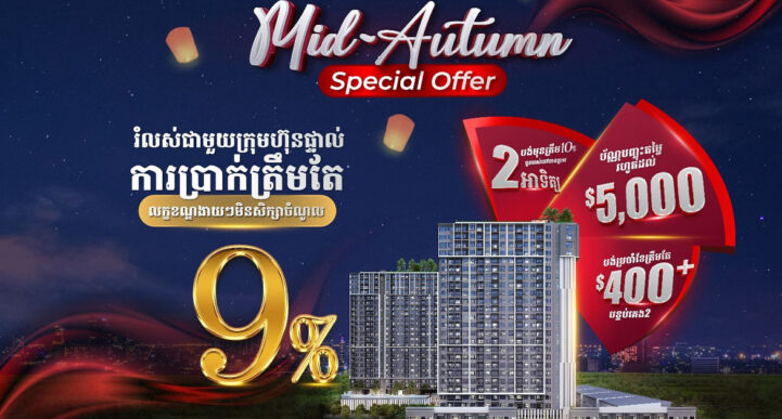 ត្រឹមតែមួយជំហានទៅកាន់ការរស់នៅបែបថ្មីដែលមាននៅ ផាកលែន ខុនដូ ធីខេ ស្ថិតនៅទីតាំងតំបន់ទួលគោក និងសែនសុខ ព្រមជាមួយនឹង Mid-Autumn Special Offer ជាច្រើនដូចជា៖ 1. រំលស់ជាមួយក្រុមហ៊ុនផ្ទាល់ការប្រាក់ត្រឹមតែ 𝟗% លក្ខខណ្ឌងាយៗមិនសិក្សាចំណូល 2. បង់ត្រឹមតែ 10% អាចចូលរស់នៅបានភ្លាម ត្រឹមតែ 2សប្តាហ៍ 3. ទទួលបានប័ណ្ណបញ្ចុះតម្លៃរហូតដល់ $5,000 4. កាន់តែពិសេស បង់ប្រចាំខែត្រឹមតែ $400ជាង សម្រាប់បន្ទប់គេង 2 ផាកលែន ខុនដូ ធីខេ សាងសង់ដោយកូនខ្មែរដែលកម្ពស់