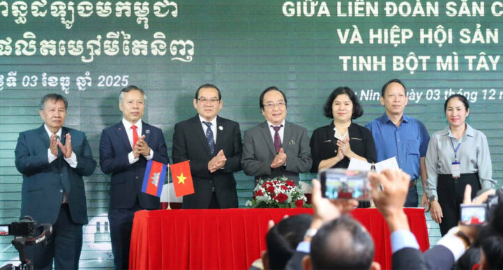 យោងតាម ក្រសួងព័ត៍មាន នាថ្ងៃទី ៥ ខែធ្នូ ឆ្នាំ ២០២៥ នេះបានឱ្យដឹងថា កាលពីថ្ងៃពុធ ទី៣ ខែធ្នូ ឆ្នាំ២០២៥ ឯកឧត្តម រាជ រ៉ា និង ឯកឧត្តម វ៉ា រុតសាន រដ្ឋលេខាធិការក្រសួងពាណិជ្ជកម្ម បានដឹកនាំគណៈប្រតិភូក្រសួងពាណិជ្ជកម្ម អភិបាលរងខេត្តត្បូងឃ្មុំ ស្វាយរៀង និងព្រៃវែង សមាជិកសមាគមសហព័ន្ធដំឡូងមីកម្ពុជា និងភាគីពាក់ព័ន្ធ ចូលរួមសន្និសីទជំរុញពាណិជ្ជកម្មនាំចេញដំឡូមីស្រស់នៅសណ្ឋាគារសាន់រ៉ាយ ខេត្តតៃនីញ ប្រទេសវៀតណាម និងធ្វើជាសាក្សីក្នុងពិធីចុះអនុស្សរណៈនៃការយោគយល់គ្នា (MOU) រវាងសហព័ន្ធដំឡូងមីកម្ពុជា និងសមាគមផលិតម្សៅមីតៃនីញលើការទិញ-លក់ដំឡូងមី រវាងក្រុមហ៊ុនកម្ពុជាចំនួន