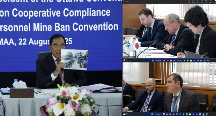 យោងតាមការចុះផ្សាយរបស់ ក្រសួងព័ត៌មាន បានឱ្យដឹងថា កាលពីថ្ងៃទី២២ ខែសីហា ឆ្នាំ២០២៥ នៅទីស្នាក់ការអាជ្ញាធរមីន ឯកឧត្តមបណ្ឌិត លី ធុជ ទេសរដ្ឋមន្ត្រី អនុប្រធានទី១ អាជ្ញាធរមីន បានជួបប្រជុំតាមរយៈប្រព័ន្ធអនឡាញ ជាមួយលោកជំទាវ Ichikawa Tomiko ប្រធានអនុសញ្ញាស្តីពីហាមប្រាមការប្រើប្រាស់មីនប្រឆាំងមនុស្ស(អនុសញ្ញាអូតាវ៉ា) និងគណៈកម្មការអនុលោមភាពនៃអនុសញ្ញាអូតាវ៉ា (Cooperative Compliance Committee) ដើម្បីស្រាយបំភ្លឺទៅលើការចោទប្រកាន់របស់ថៃដែលថាកម្ពុជាបានដាក់មីនថ្មី និងបង្ហាញពីជំហររបស់កម្ពុជា ក្នុងនាមជារដ្ឋភាគីអនុសញ្ញាអូតាវ៉ា។ កិច្ចប្រជុំនេះផងដែរ ក៏មានវត្តមានចូលរួមរបស់ ឯកឧត្តម ឯកអគ្គរាជទូត អ៊ិន តារា តំណាងអចិន្ត្រៃយ៍កម្ពុជាប្រចាំអង្គការសហប្រជាជាតិនៅទីក្រុងហ្សឺណែវ។ ពាក់ព័ន្ធនឹងការចោទប្រកាន់របស់ថៃ ថាកម្ពុជាបានដាក់មីនថ្មី