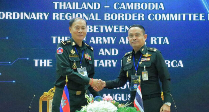 យោងតាមការចុះផ្សាយរបស់ ក្រសួងព័ត៌មាន បានឱ្យដឹងថា កាលនៅថ្ងៃទី២១ ខែសីហា ឆ្នាំ២០២៥ កិច្ចប្រជុំលេខាធិការដ្ឋាននៃគណៈកម្មាធិការព្រំដែនថ្នាក់យោធភូមិភាគកម្ពុជា-ថៃ (RBC) រវាងយោធភូមិភាគទី៥ របស់កម្ពុជា និងកងទ័ពភូមិភាគទី១ របស់ថៃ បានដំណើរការកិច្ចប្រជុំរបស់ខ្លួននៅថ្ងៃទី២១ ខែសីហា ឆ្នាំ២០២៥ នេះ ដោយភាគីទាំងពីរបានឯកភាពដំណើរការកិច្ចប្រជុំមួយផ្នែកតាមប្រព័ន្ធបច្ចេកវិទ្យាអនឡាញ រយៈពេលពេញ១ថ្ងៃ។ ជាលទ្ធផល កិច្ចប្រជុំក្រុមលេខា បានប្រព្រឹត្តទៅដោយមានការរីកចម្រើនជាវិជ្ជមានមួយចំនួនគួរឱ្យកត់សម្គាល់ ក្រោយពេលជួបប្រជុំពិភាក្សាគ្នា ដើម្បីត្រៀមសម្រាប់កិច្ចប្រជុំកិច្ចប្រជុំវិសាមញ្ញរបស់គណៈកម្មាធិការព្រំដែនថ្នាក់យោធភូមិភាគ កម្ពុជា-ថៃ (RBC) នៅថ្ងៃនេះផងដែរ៕ ប្រភព៖ ក្រសួងព័ត៌មាន