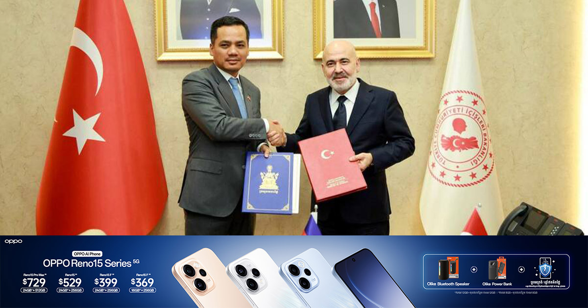 យោងតាម ក្រសួងព័ត៍មាន នាថ្ងៃទី ១៣ ខែកុម្ភ: ឆ្នាំ២០២៦ នេះបានឱ្យដឹងថា ឯកឧត្តមអភិសន្តិបណ្ឌិត ស សុខា ឧបនាយករដ្ឋមន្ត្រី រដ្ឋមន្ត្រីក្រសួងមហាផ្ទៃ និងឯកឧត្តម Mehmet Saglam អនុរដ្ឋមន្ត្រីក្រសួងមហាផ្ទៃតួកគីយ៉េ អញ្ជើញចុះហត្ថលេខាលើអនុស្សរណៈ នៃការយោគយល់គ្នា រវាងក្រសួងមហាផ្ទៃ នៃរាជរដ្ឋាភិបាលកម្ពុជា និងក្រសួងមហាផ្ទៃ នៃរដ្ឋាភិបាលតួកគីយ៉េ ស្តីពីកិច្ចសហប្រតិបត្តិការលើការងារបណ្ដុះបណ្ដាល នៅទីស្តីការក្រសួងមហាផ្ទៃតួកគីយ៉េ នាថ្ងៃទី១២ ខែកុម្ភៈ ឆ្នាំ២០២៦។ ប្រភព ក្រសួងព័ត៍មាន