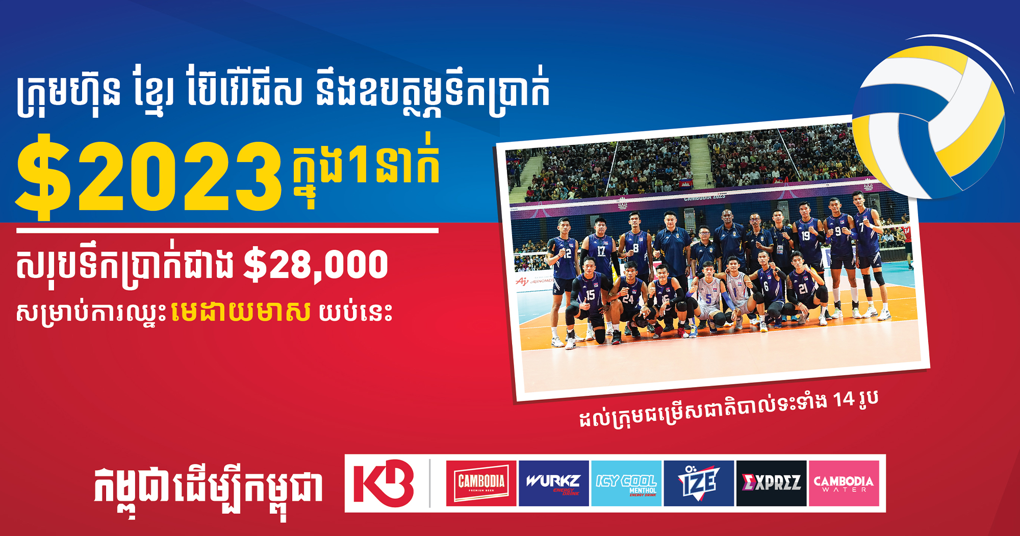 មិនឈ្នះមេដាយមាស តែឈ្នះទឹកចិត្តប្រជាជនកម្ពុជា! ក្រុមហ៊ុន ខ្មែរ ប៊ែវើរីជីស លើកទឹកចិត្តអត្តពលិកកីឡាបាល់ទះម្នាក់ ១,០០០ដុល្លារ សម្រាប់ការប្រឹងប្រែងទទួលបានមេដាយប្រាក់
