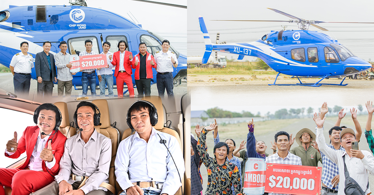 ផ្អើលអស់អ្នកភូមិ! អតិថិជនកំពូលសំណាង ៣រូប ដែលឈ្នះរង្វាន់ធំ ២ម៉ឺនដុល្លារ ត្រូវបាន CAMBODIA BEER បញ្ចេញ Helicopter លំដាប់អភិជនទៅយកដល់ផ្ទះ