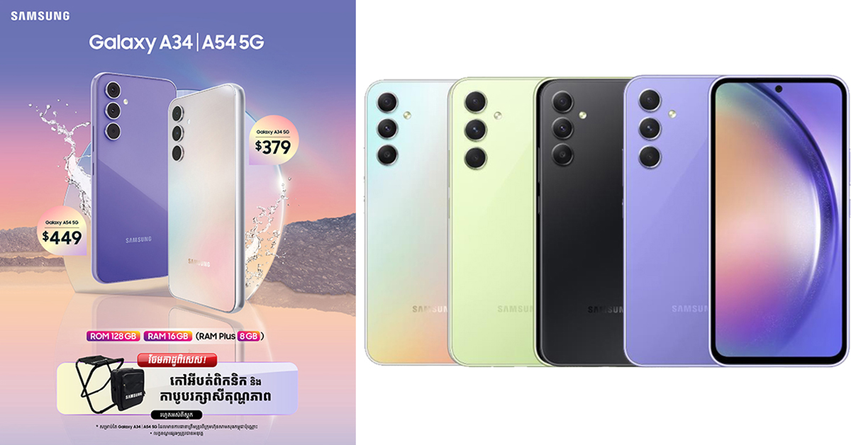 ស្វាគមន៍ស្មាតហ្វូនដែលមានរាងថ្មី…បច្ចេកវិទ្យាថ្មីទាក់ទាញ Samsung Galaxy A34 | A54 5G មកដល់ទីផ្សារកម្ពុជាជាមួយកាដូផ្ដល់ជូនម៉ាពេញបេះដូងតែម្ដង…!! អេក្រង់ធំច្បាស់ ថតស្អាតកប់ស៊េរី ថ្មកាន់ប្រើឡើងហត់…!!!