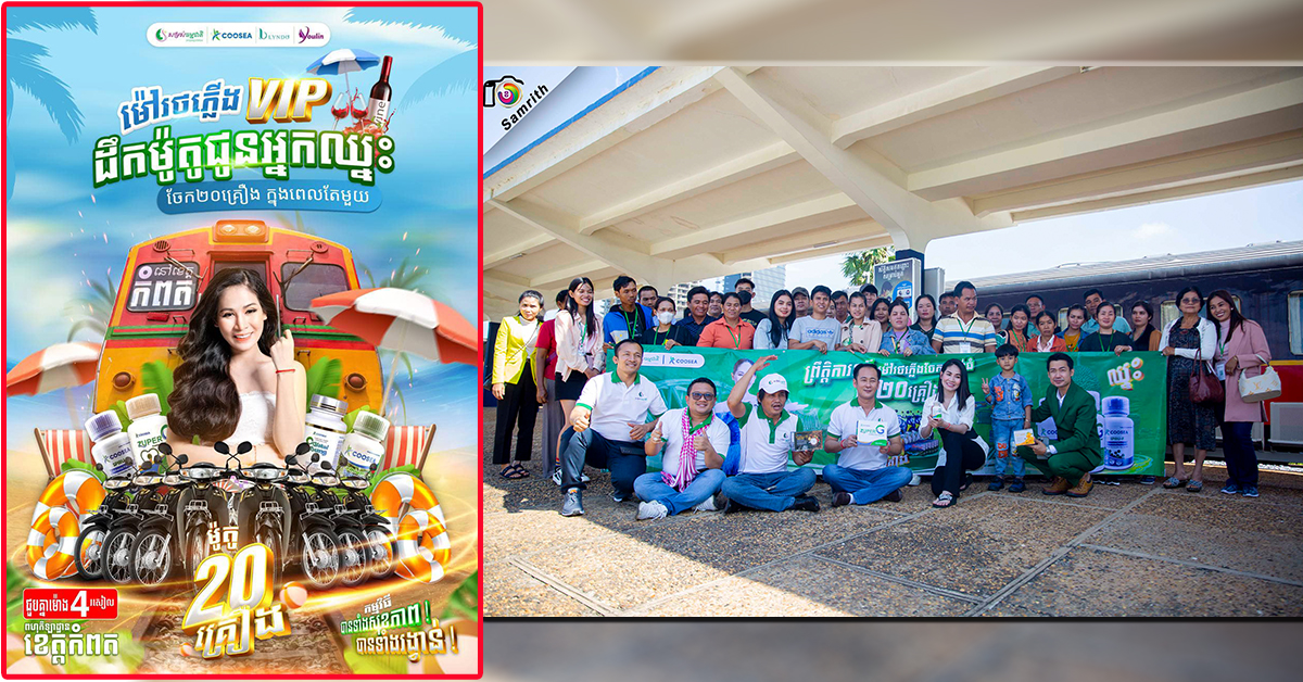អស់ពីម៉ៅយន្តហោះ សម្រស់ធម្មជាតិសម្រេចចិត្តម៉ៅរថភ្លើងលំដាប់ VIP ដឹកអតិថិជនទៅចែករង្វាន់ម៉ូតូនៅទីរួមខេត្តកំពតវិញម្តង