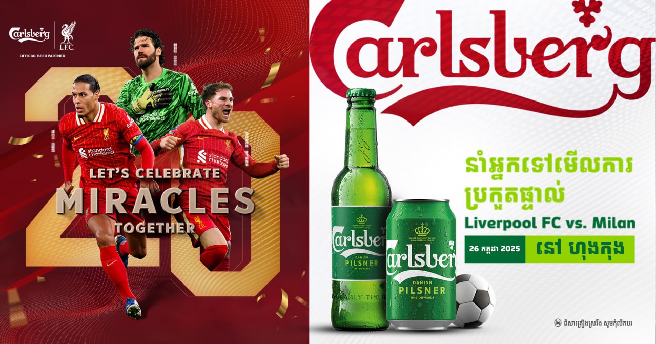 តស់ៗ! ឱកាសដ៏កម្រ ឈ្នះរង្វាន់ពី Carlsberg នាំអ្នកទៅទស្សនាផ្ទាល់ ការប្រកួតបាល់ទាត់លំដាប់ពិភពលោក ក្រុមហង្សក្រហម Liverpool FC ប៉ះ ពស់ថ្លាន់ Milan នៅហុងកុង ថ្ងៃទី ២៦ កក្កដា ២០២៥