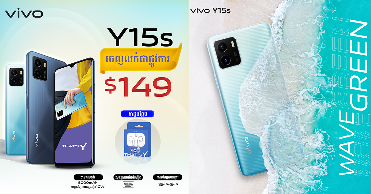 ស្មាតហ្វូនបងប្អូនត្រកូល Y vivo Y15s សមត្ថភាពខ្ពស់ ទំហំថ្មធំ 5000mAh សាកថ្មលឿន 10W តម្លៃត្រឹម $149 មានវត្តមាននៅលើទីផ្សារកម្ពុជាហើយ!