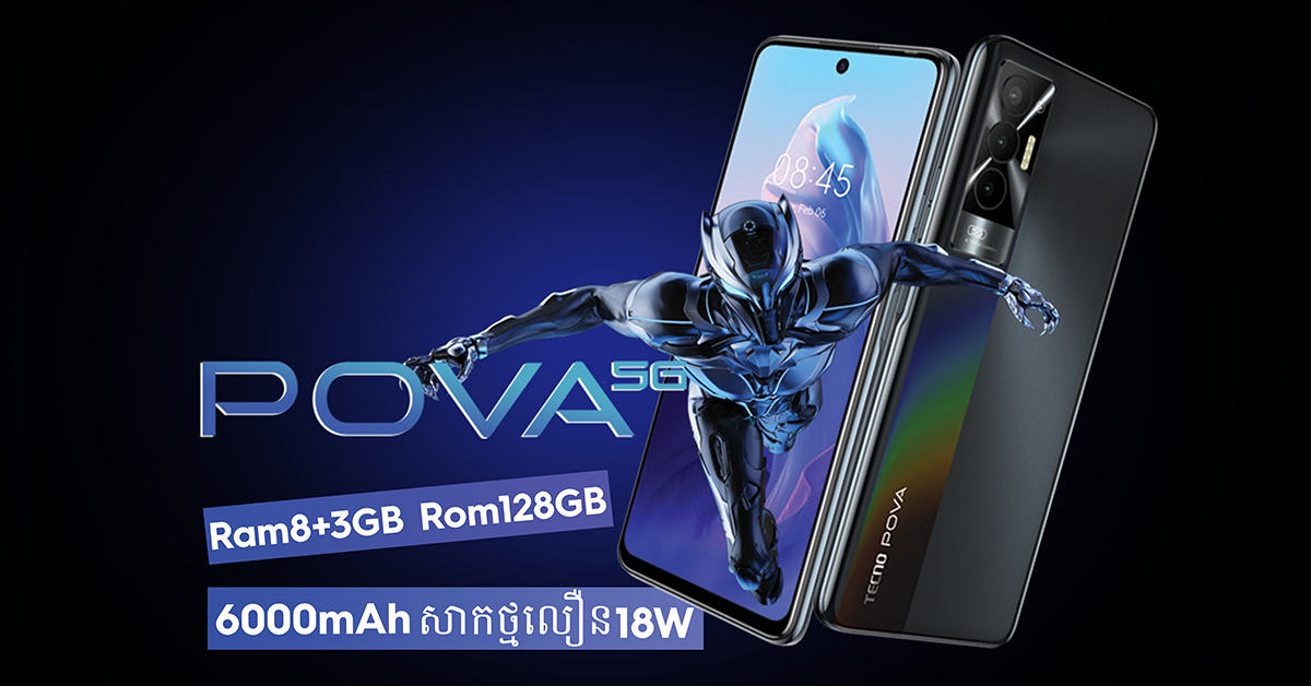 ទូរស័ព្ទដៃម៉ាក TECNO ត្រកូល POVA មានសេរីថ្មី២ម៉ូដែលទៀតហើយ កំពុងវាយលុកចូលទីផ្សារប្រទេសកម្ពុជា ទទួលបានការចាប់អារម្មណ៍ខ្លាំង តម្លៃសមរម្យបំផុត ដែលមានអេក្រង់ធំ កំលាំងថ្មខ្លាំងសាកថ្មលឿន និងបំពាក់បច្ចេកវិទ្យា 5G