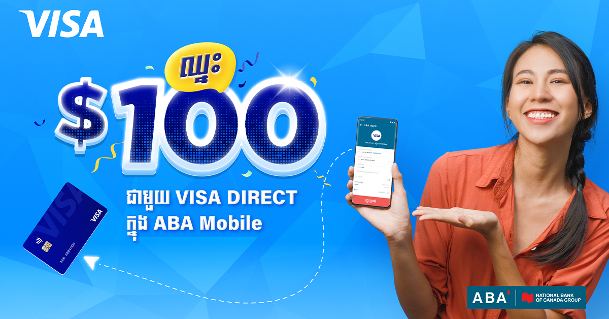 ប្រម៉ូសិន Visa Direct ក្នុង ABA Mobile ត្រឡប់មកវិញជាមួយនឹងរង្វាន់ជាសាច់ប្រាក់ច្រើនជាងមុន!
