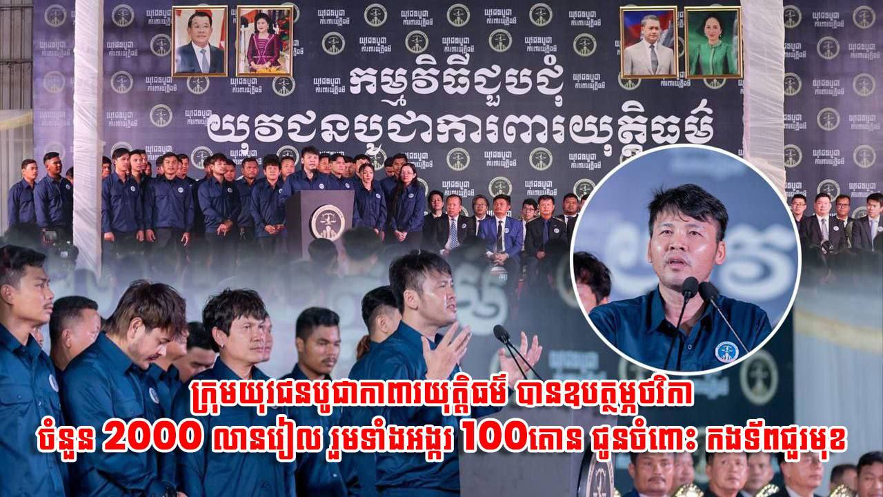 “ក្រុមយុវជនបូជាការពារយុត្តិធម៌” ដឹកនាំដោយអ្នកឧកញ៉ា ឡេង ណាវ៉ាត្រា នាំយកអំណោយចុះសាកសួរសុខទុក្ខកងទ័ពផ្ទាល់ រួមមានថវិកា ២០០លានរៀល អង្ករ៥០តោន មីជាតិ២ពាន់កេះ ជូនបញ្ជាការដ្ឋានអង្គរក្សប្រចាំការនៅសមរភូមិមុខ