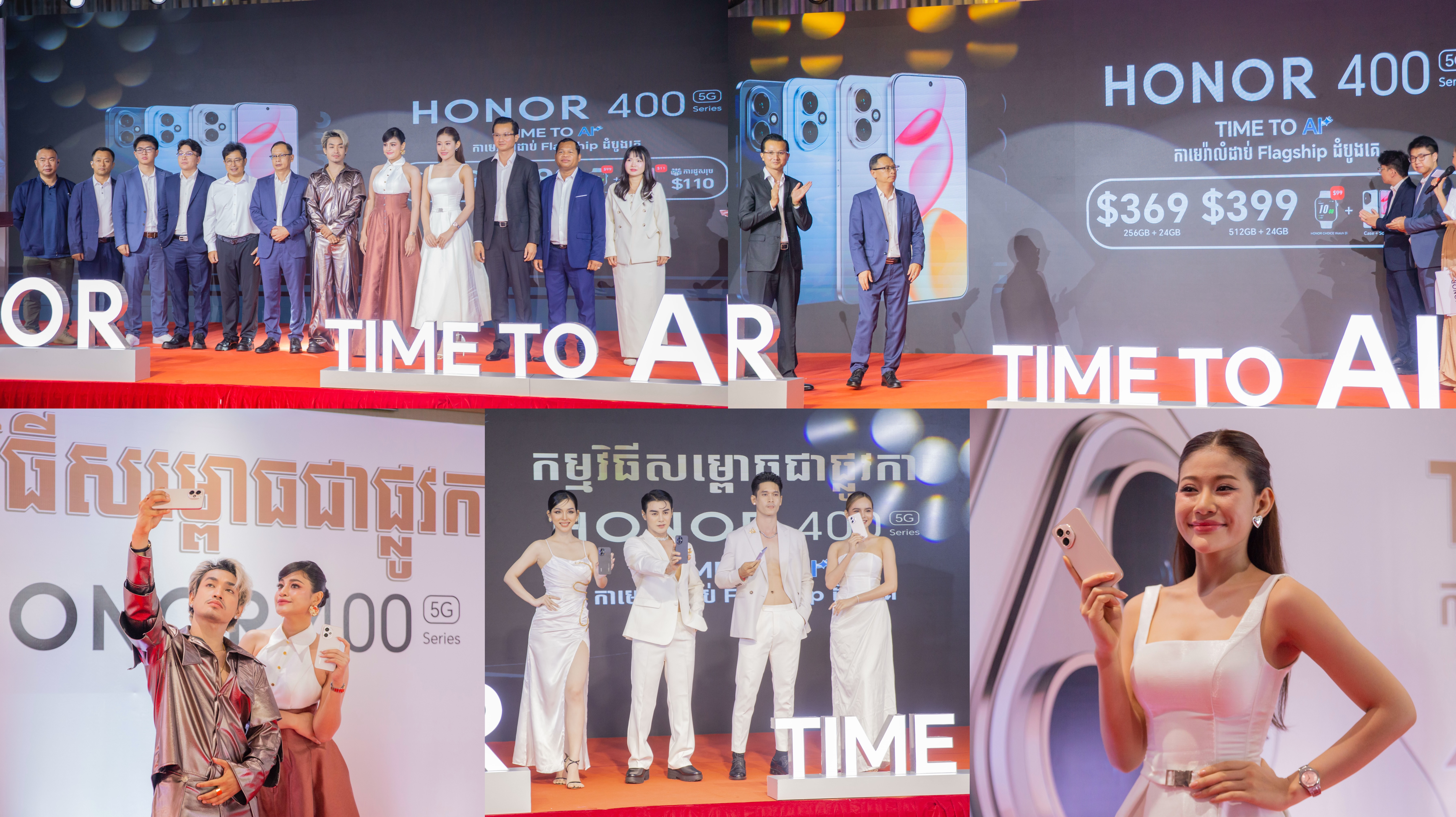 តារាប្រុសស្រីល្បីៗអង្រួនឆាកសម្ពោធ ស្មាតហ្វូនស៊េរីថ្មីរាងដូចផ្លែប៉ោម HONOR 400 5G Series Time to AI កាមេរ៉ាលំដាប់ Flagship 200 មេហ្គាភិកស៊ែលផ្អើលអស់អ្នកគាំទ្រ