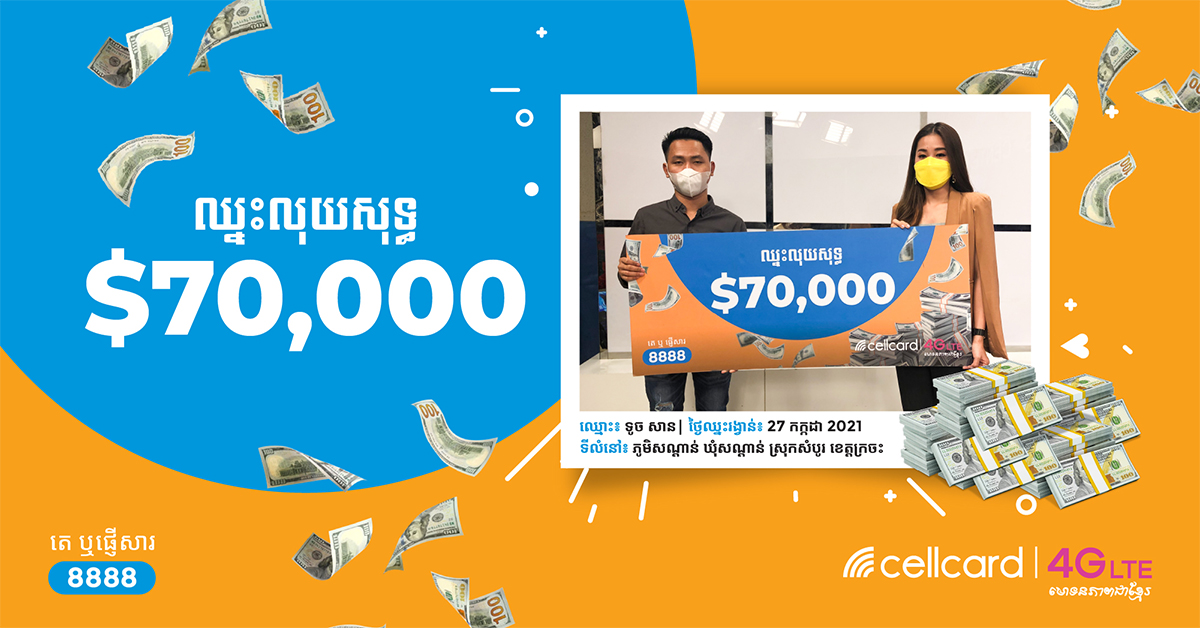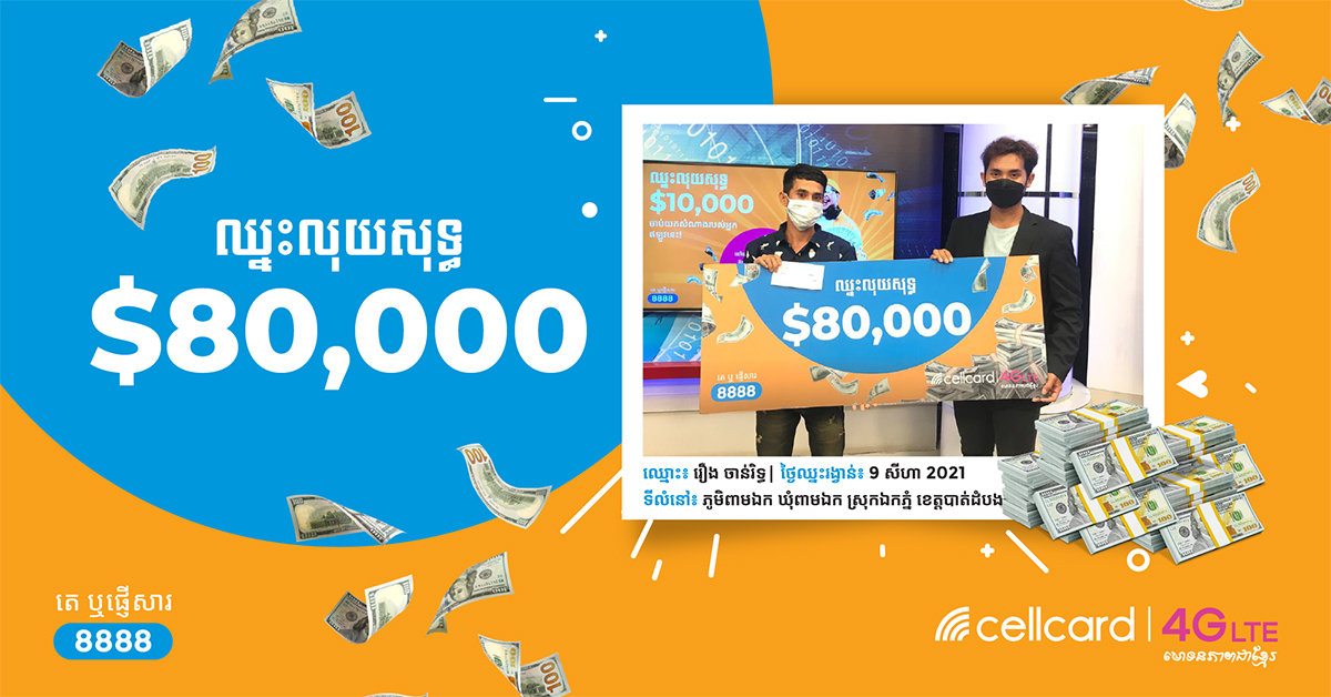 អតិថជនសែលកាត ជនជាតិចិនម្នាក់បានឈ្នះរង្វាន់លុយសុទ្ធរហូតដល់ $80,000 ពី សែលកាត!