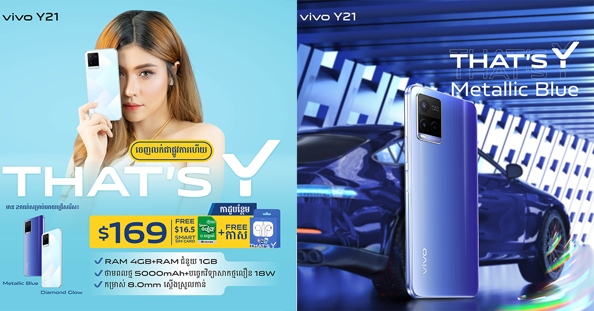 That’s Y! ស្មាតហ្វូន vivo Y21 ដែលមានតម្លៃក្រោម $200 ដំបូងគេមានបំពាក់ដោយបច្ចេកវិទ្យា Ram ជំនួយ ចេញលក់ជាផ្លូវការលើទីផ្សារ!