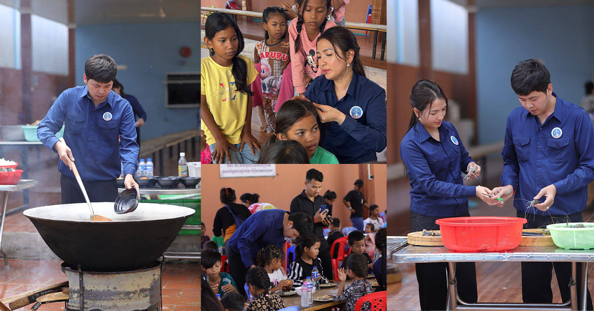 ឧកញ៉ា ឡេង និមលដឹកដៃភរិយា ធ្វើម្ហូបតុងយ៉ាំបង្កង ១ខ្ទះត្នោតធំឱ្យកូនៗប្រមាណ ២០០នាក់ក្នុងមណ្ឌលមែកឈើ