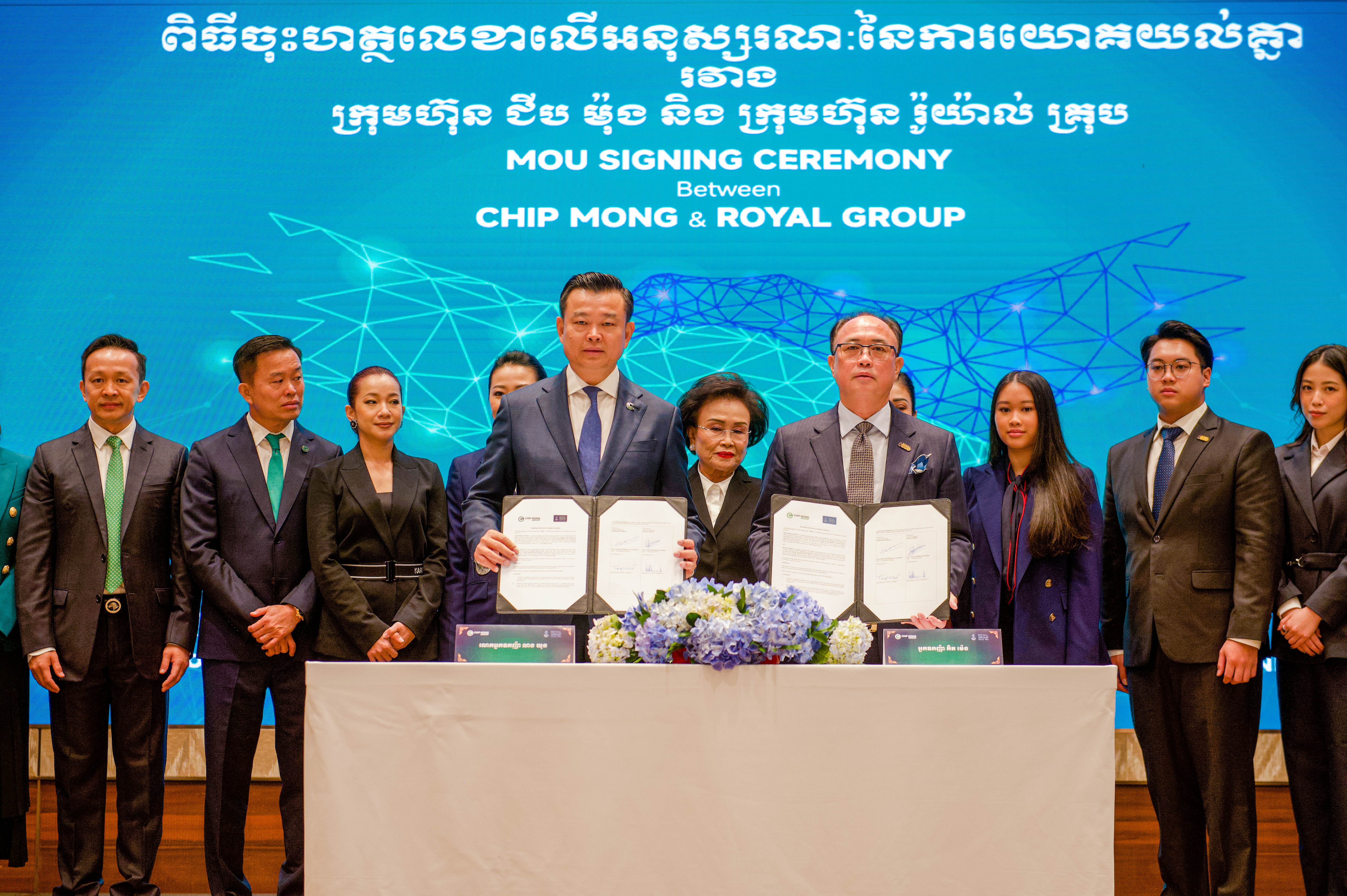 កិច្ចសហការជាប្រវត្តិសាស្ត្រ! ក្រុមហ៊ុនយក្សទាំង២ប្រចាំស្រុកខ្មែរ ជីប ម៉ុង និង រ៉ូយ៉ាល់ គ្រុប ធ្វើពិធីចុះហត្ថលេខាលើកិច្ចព្រមព្រៀងភាពជាដៃគូ សំដៅជំរុញកំណើនសេដ្ឋកិច្ចជាតិ