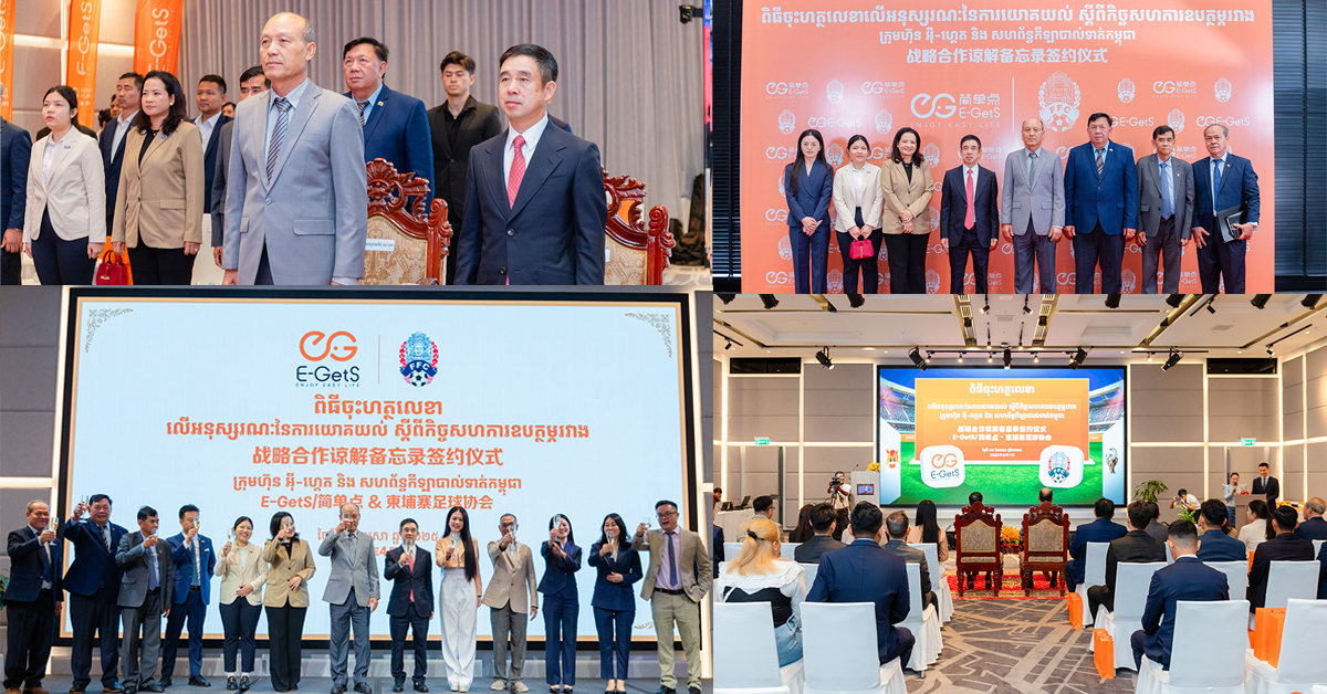 ពិធីចុះហត្ថលេខាលើអនុស្សរណៈនៃការយោគយល់គ្នាស្តីពីកិច្ចសហការឧបត្ថម្ភ រវាងក្រុមហ៊ុន E-GetS/អ៉ី-ហ្គេត និងសហព័ន្ធកីឡាបាល់ទាត់កម្ពុជា
