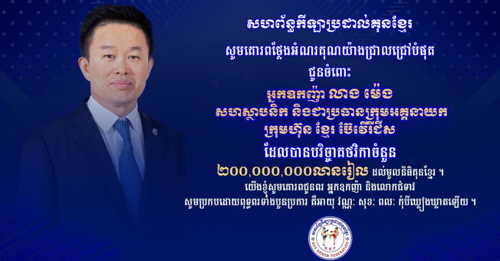 សហព័ន្ធកីឡាប្រដាល់គុនខ្មែរ ថ្លែងអំណរគុណអ្នកឧកញ៉ា លាង ម៉េង ចំពោះការនាំមុខបរិច្ចាគថវិកា ២០០លានរៀល ជួយក្លឹបខ្វះខាតទូទាំងប្រទេសកម្ពុជា