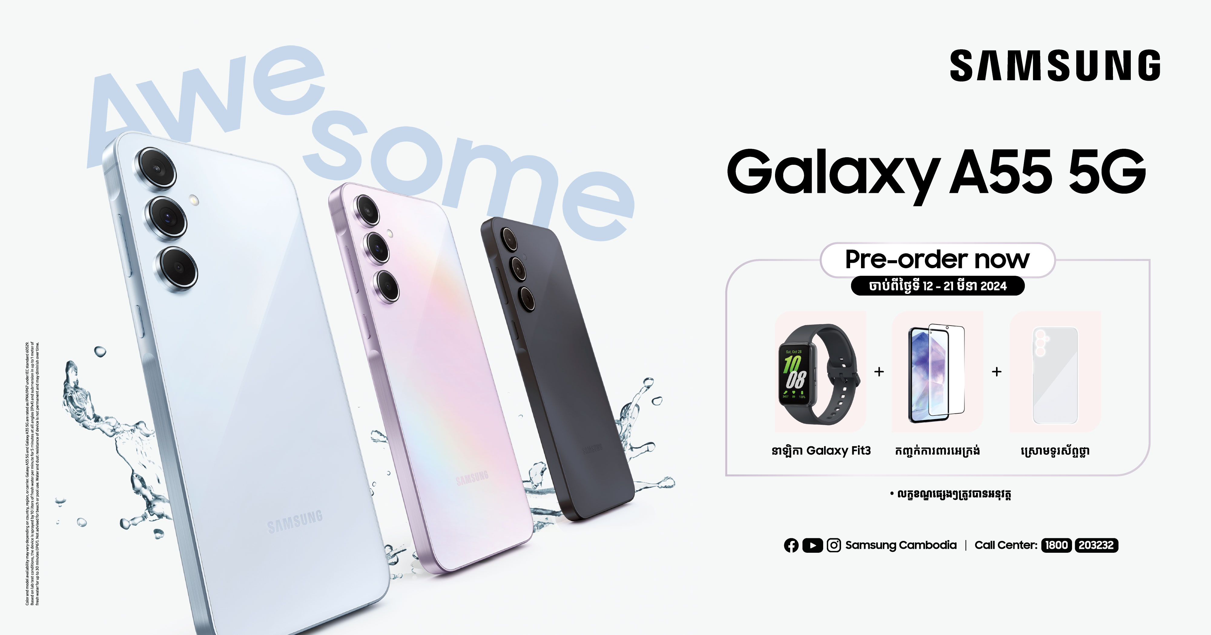 Galaxy A55 5G ជាមួយរចនាបថ Premium កាន់តែស៊ីវិល័យ សមត្ថភាពខ្លាំង ប្រព័ន្ធសុវត្ថិភាពកម្រិតខ្ពស់ បានដាក់ឱ្យ Pre-Order ហើយ!
