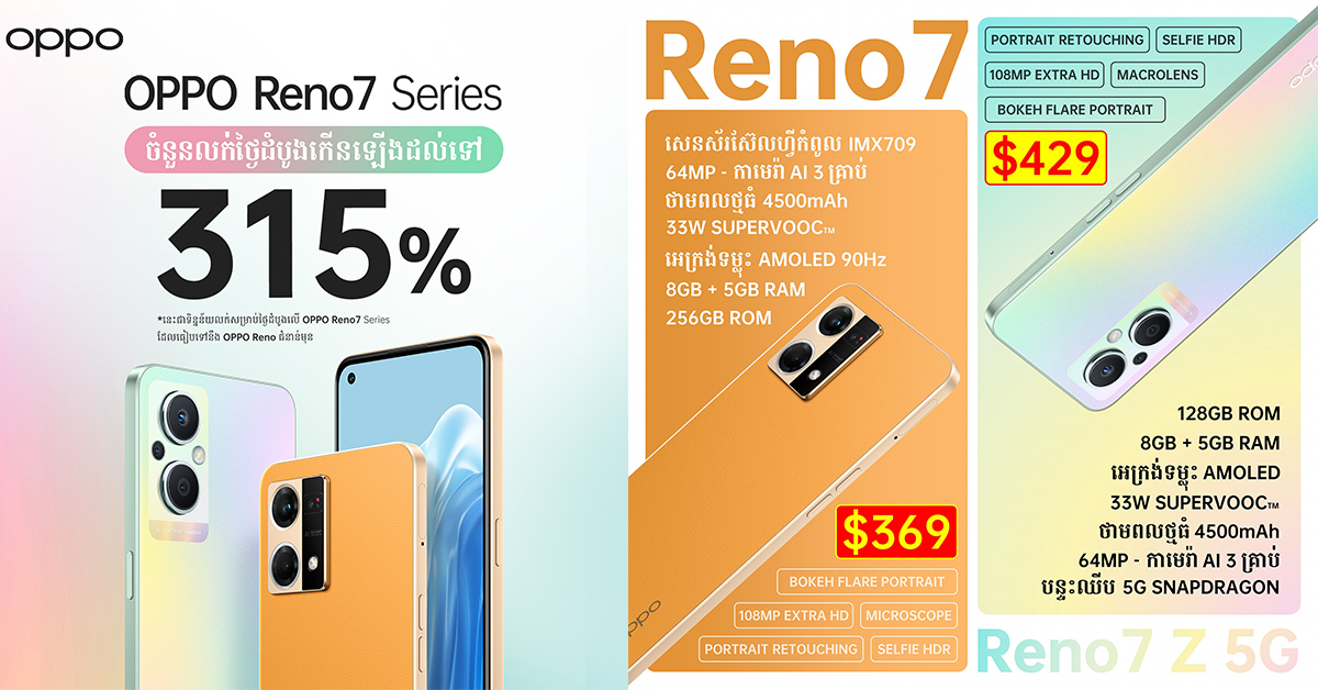 កប់ស៊េរី! អតិថិជននាំគ្នាទម្លាយខ្ទេចពីសមត្ថភាពខ្លាំងរបស់ OPPO Reno7 Series នាំឲ្យស្មាតហ្វូននេះល្បីកក្រើកលើទីផ្សារកម្ពុជា!