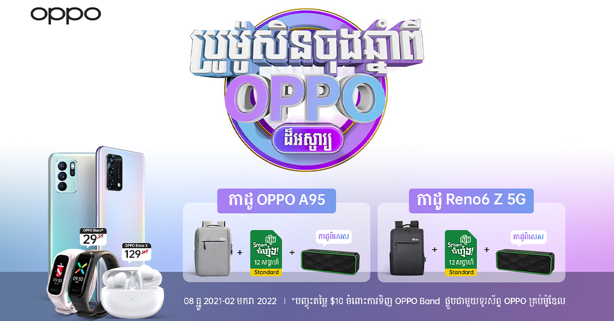 អ្នកណាខ្លះរង់ចាំប្រូម៉ូសិនចុងឆ្នាំពី OPPO? ឆ្នាំនេះ OPPO ផ្តល់ជូនដល់អតិថិជនលើពីការរពឹងទុក ចាប់ពីថ្ងៃទី8 ខែធ្នូ ឆ្នាំ2021 ដល់ថ្ងៃទី02 ខែមករា ឆ្នាំ2022