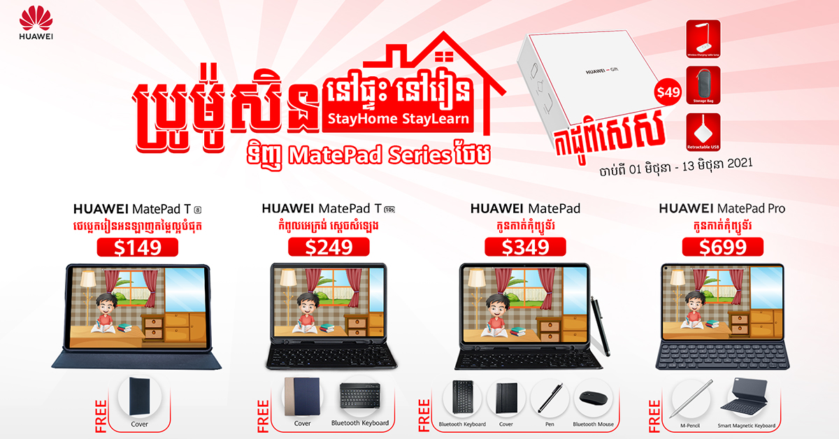 កម្មវិធីប្រម៉ូសិននៅផ្ទះនៅរៀន របស់ក្រុមហ៊ុនហួវៃលើកនេះដឹងតែផ្អើលហ្មង៎ លែងថែមសុទ្ធតែកាដូញាក់សាច់ Huawei Gift Box តម្លៃ $49 ភ្លាមៗ