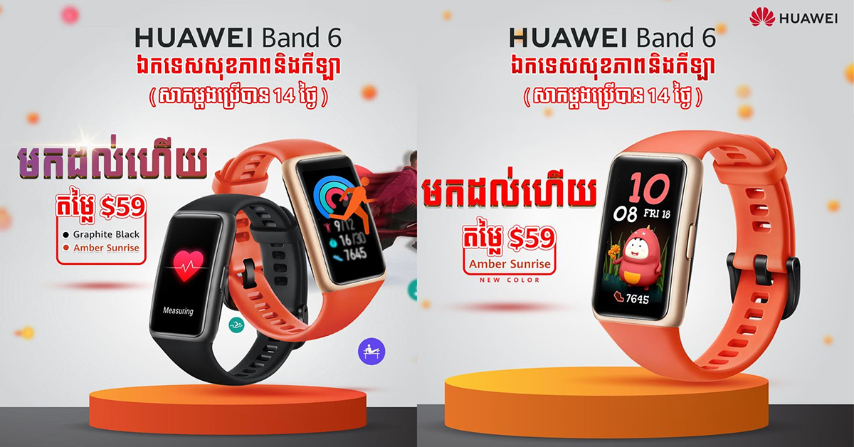 ស្រឡាញ់ពណ៌ខ្មៅ ឬទឹកក្រូច! នាឡិកាឆ្លាតវៃជំនាន់ថ្មី HUAWEI Band 6 អ្នកឯកទេសសុខភាពនិងកីឡា ដាក់លក់ក្នុងតម្លៃត្រឹមតែ $59