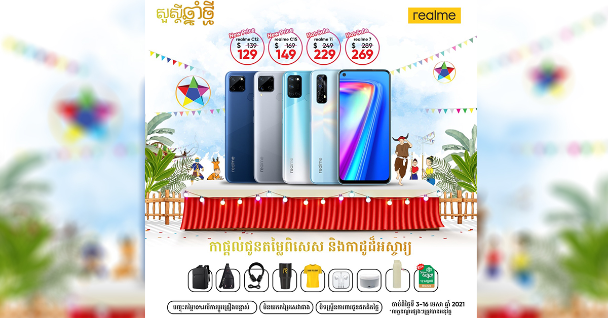 ឱកាសពិសេស! តម្លៃពិសេសពី realme ជាមួយនឹងកាដូជាច្រើនកំពុងរងចាំអ្នកក្នុងពិធីបុណ្យចូលឆ្នាំខ្មែរ