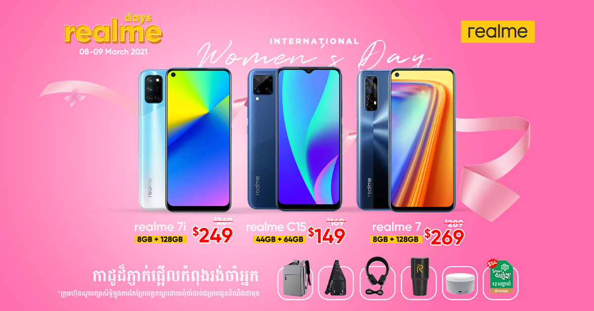 រឹតតែអស្ចារ្យក្នុងទិវានារីអន្តរជាតិ! realme មានការផ្តល់ជូនតម្លៃពិសេសទ្វេដងរហូតដល់អស់ពីស្តុក